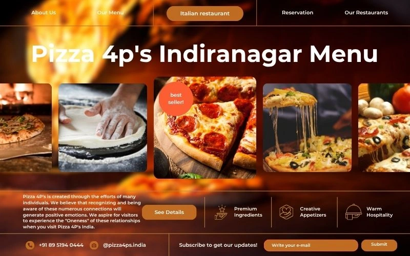 A: Yes! Most Pizza 4p’s Indiranagar Menu items are available through their online platform or reservation system. This lets you plan your order before arriving. The Pizza 4p’s website also features Pizza 4p’s Indiranagar Photos showcasing signature dishes, helping you visualize what you’ll order.
